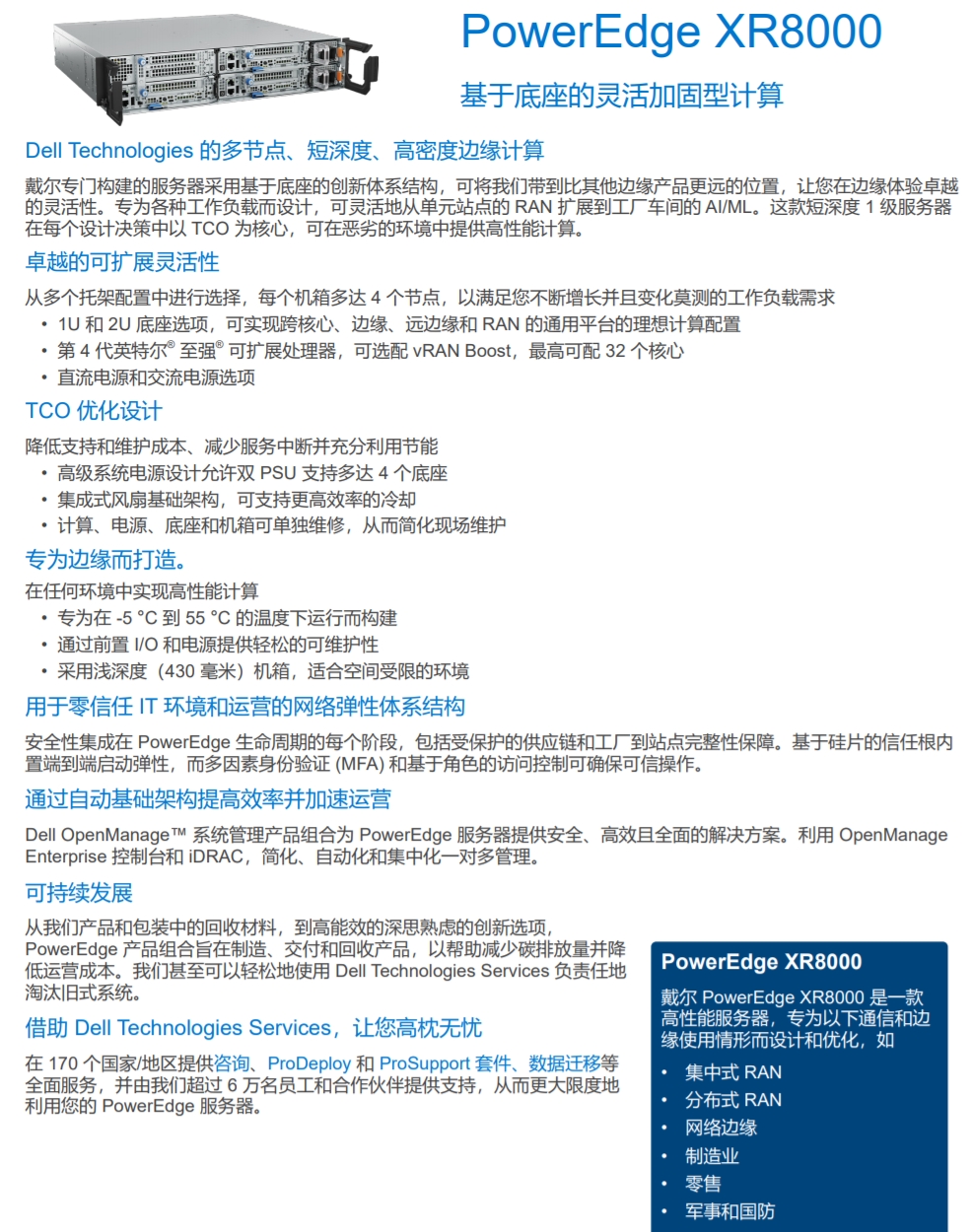 DELL PowerEdge XR8000基于底座的靈活加固型計算。