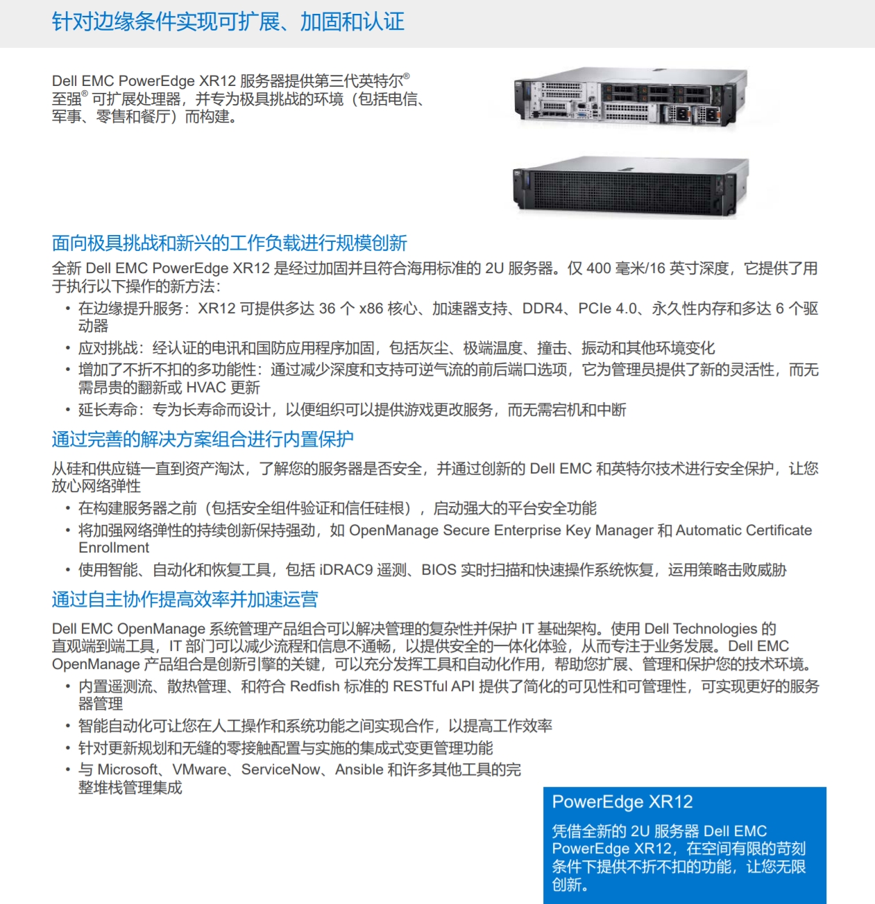 Dell EMC PowerEdge XR12 服務(wù)器提供第三代英特爾?至強(qiáng)? 可擴(kuò)展處理器,并專為極具挑戰(zhàn)的環(huán)境(包括電信、軍事、零售和餐廳)而構(gòu)建。
